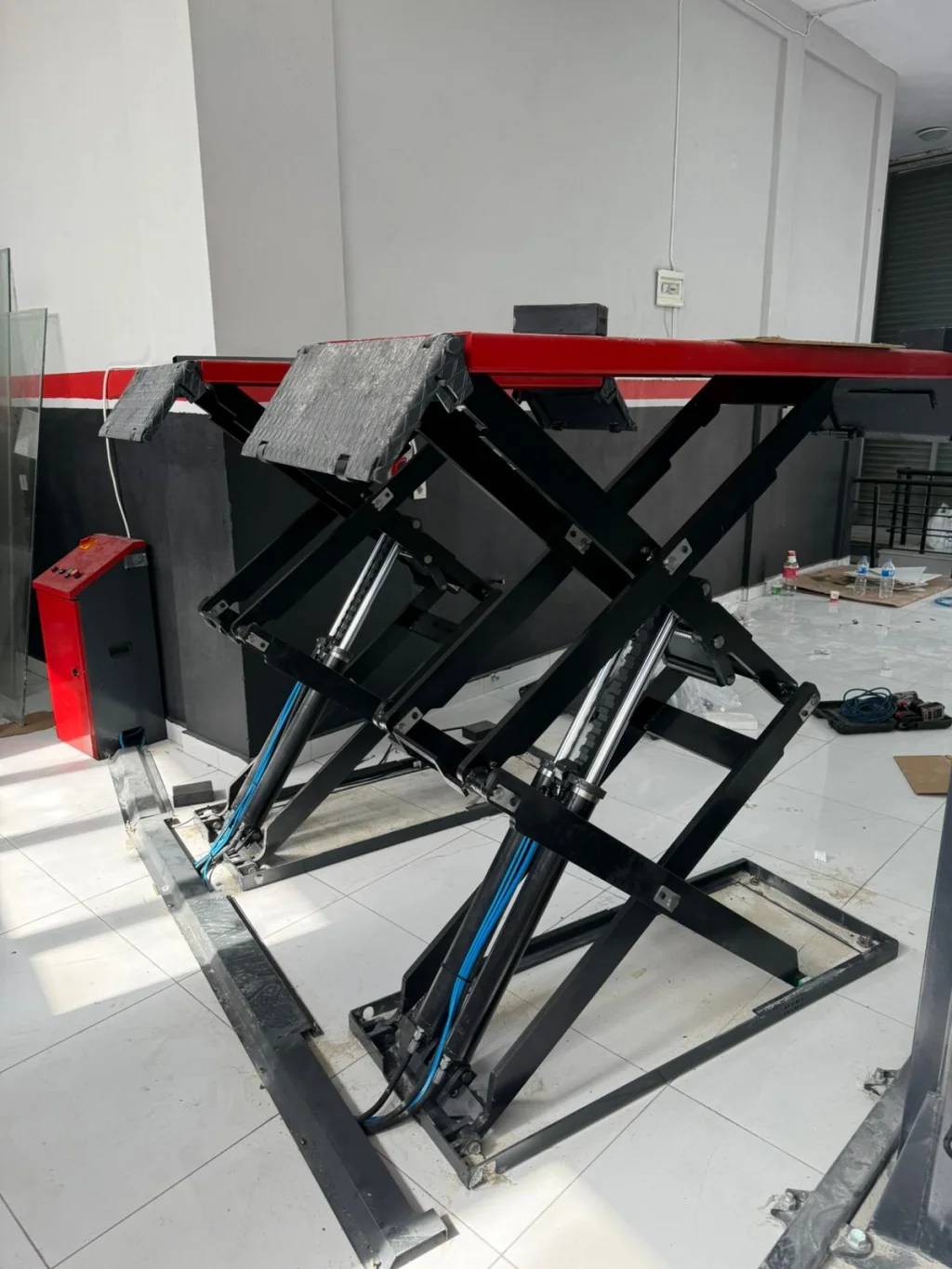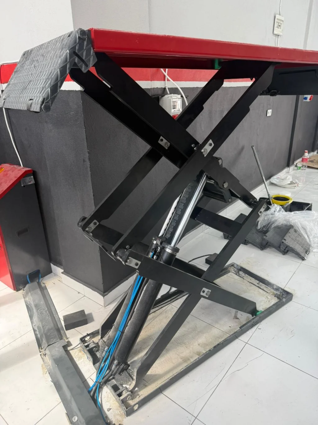 2 Metre 3500 Kg Mekanik Kilit Sistemli Makaslı Lift, oto servisler, lastik servisleri ve bakım atölyeleri için yüksek güvenlik ve performans sunan profesyonel bir kaldırma ekipmanıdır.