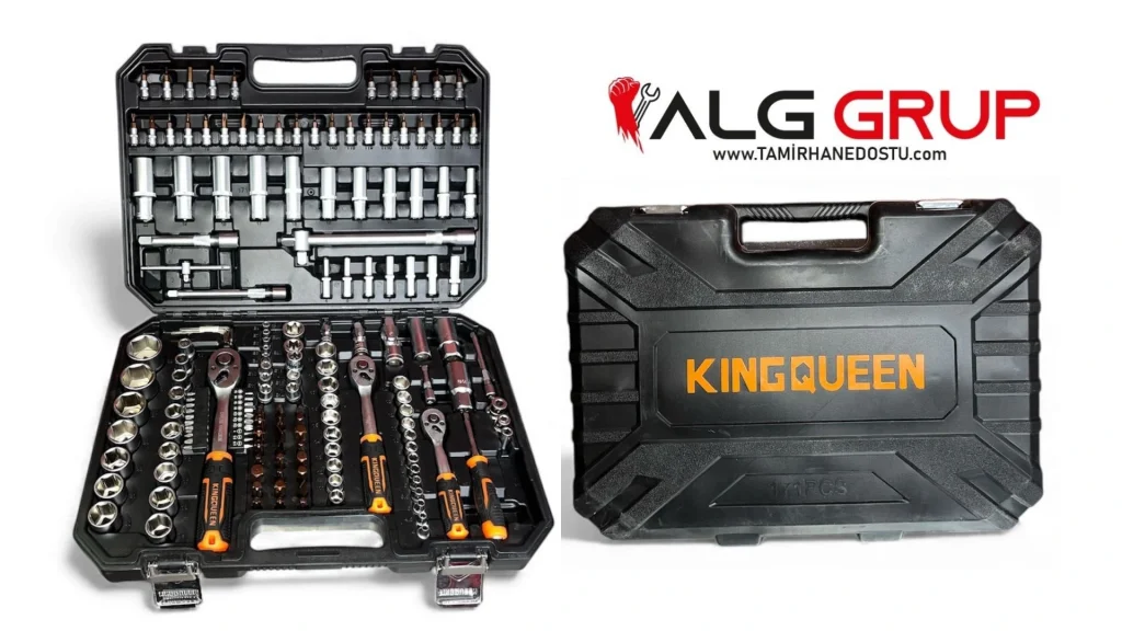 KINGQUEEN 172 Parça Lokma Anahtar Seti, profesyonel ustalar ve atölyeler için geliştirilmiş geniş kapsamlı bir tamir bakım setidir. Yüksek dayanımlı krom vanadyum çelik (Cr-V) yapısı sayesinde uzun ömürlü kullanım sağlar ve ağır iş koşullarında bile maksimum performans sunar.